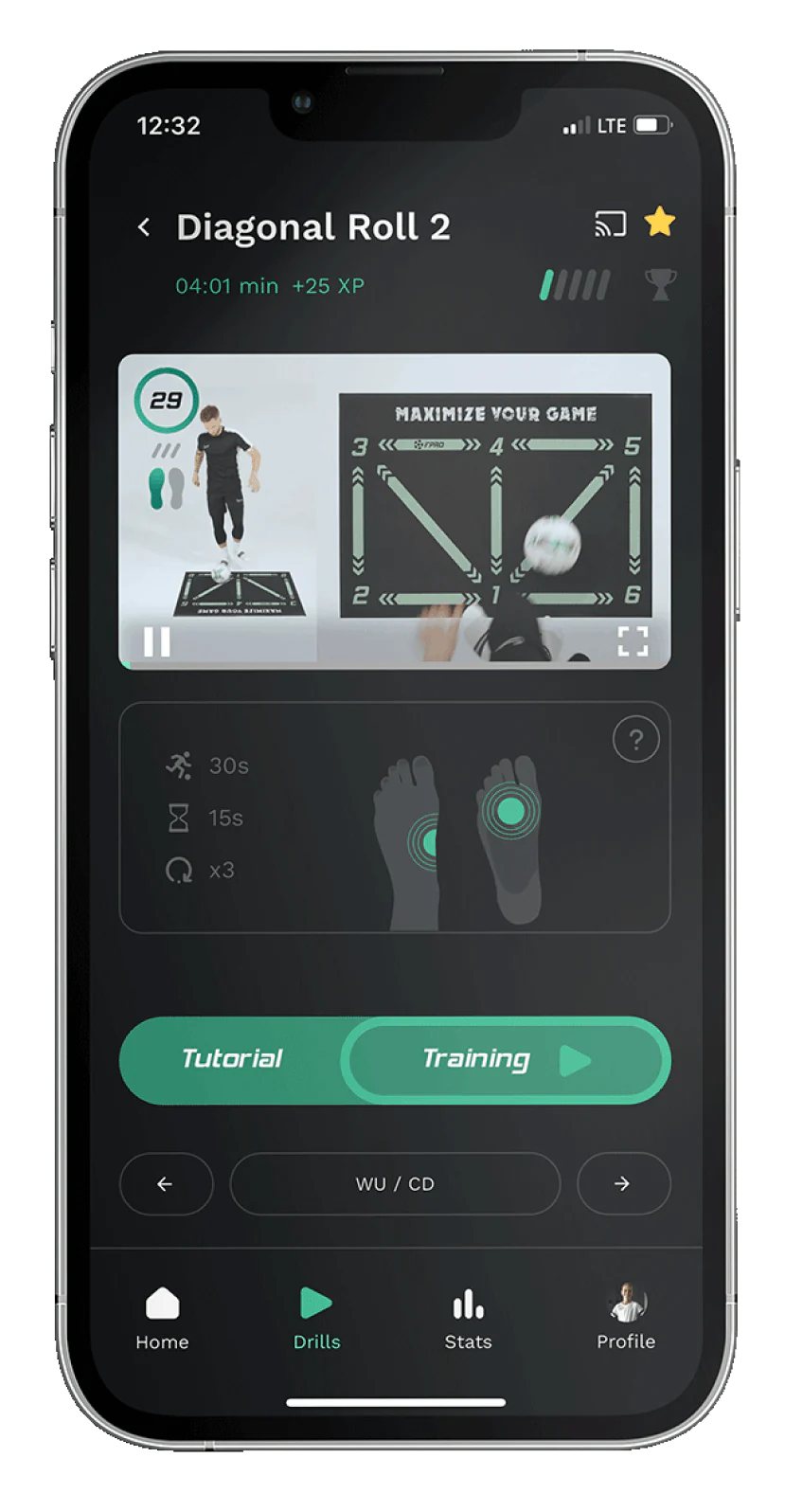 F-Pro was created by professional football coaches to help players accelerate their learning process, providing clear instructions on practicing footwork techniques at home with the best football training mat.